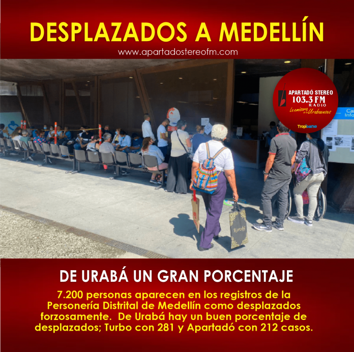En los registros presentados por la Personería Distrital de Medellín aparecen 7.200 desplazados forzosamente, con un total de 493 casos de personas de Urabá que llegaron a la capital antioqueña por riesgo de ser asesinados.La Personería Distrital de Medellín registró con corte hasta el 31 de diciembre de 2023, un total de 2.995 declaraciones, que equivalen a 7.221 personas víctimas de desplazamiento forzado. Esta cifra, representa una disminución del 16% con respecto al año anterior que corresponde a 8.632 personas víctimas de este flagelo.