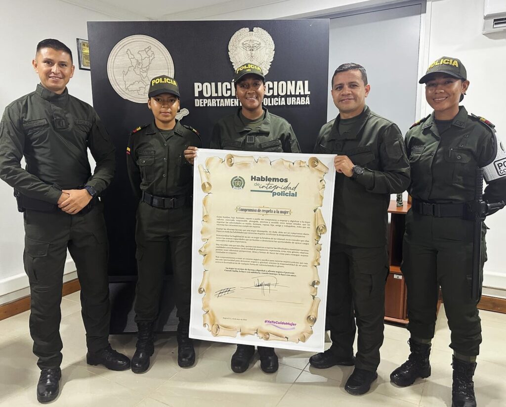 En el comando de la Policía de Urabá se ha firmado un documento en el que la institución se compromete de manera firme a velar por el respeto y cuidado de las mujeres. Este compromiso busca fortalecer la protección y los derechos de las mujeres en la región.