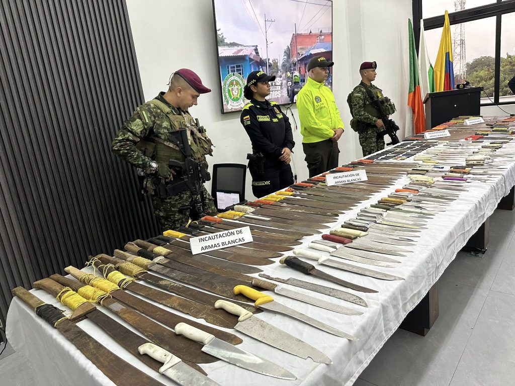 En el marco de la estrategia integral “Seguros, Cercanos y Presentes”, y en articulación con la Administración Municipal de Apartadó, la Policía Nacional adelantó operativos de control que permitieron la incautación de 216 armas cortopunzantes entre junio, julio y lo corrido de agosto de 2025.