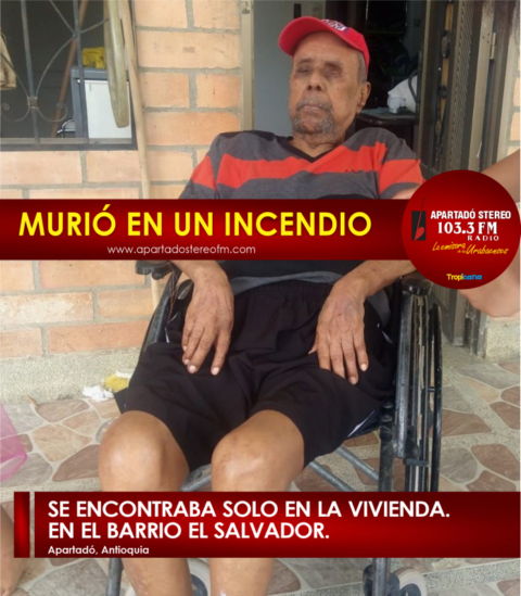 Apartadó En un incendio ocurrido la noche anterior, en el barrio El Salvador de Apartadó, un adulto mayor que presentaba una discapacidad resultó muerto con quemaduras de tercer grado. Aun que la comunidad