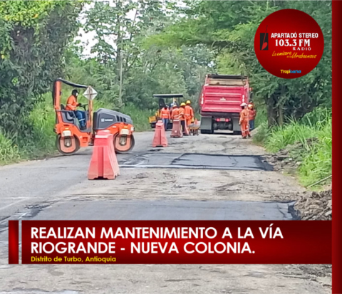 Realizan mantenimiento a la vía a Nueva Colonia, Turbo. Cotema contrató las obras de reparcheo y mantenimiento de la vía al corregimiento de Nueva Colonia, Turbo, por donde ingresa gran