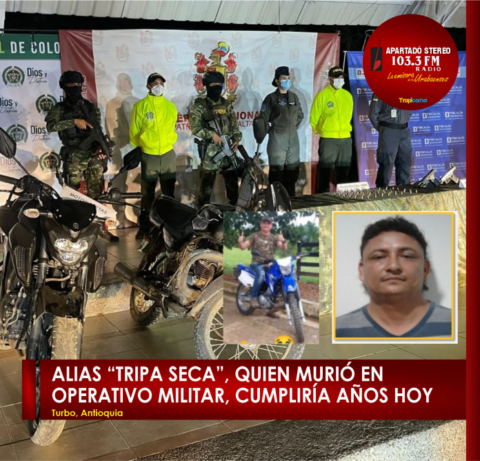 Uno de los hombres de las AGC que falleció en el operativo militar en el corregimiento El Dos de Turbo, alias «Tripa seca», iba a celebrar su cumpleaños esta semana. Robirio